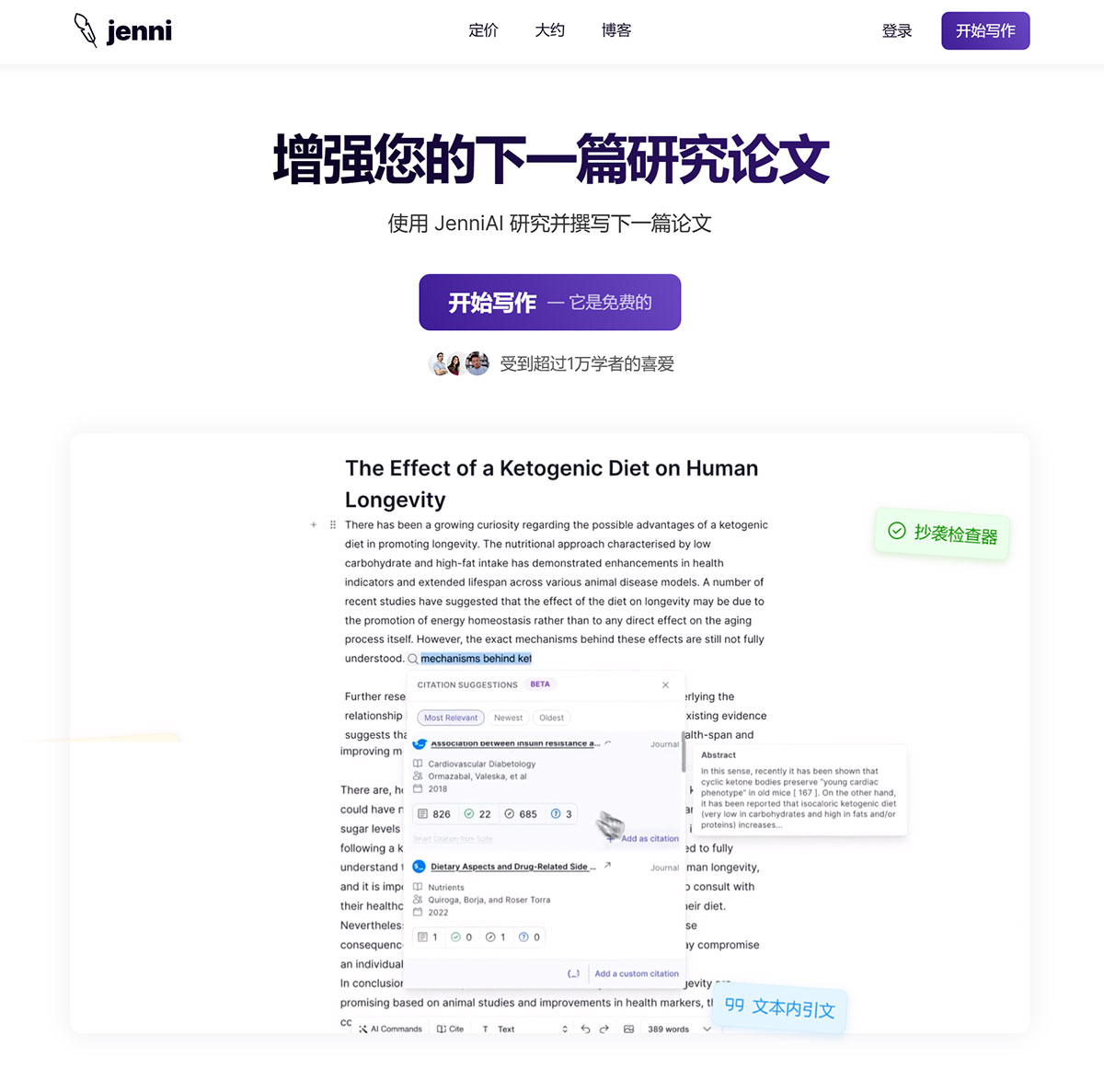 Jenni AI,一個人工智能寫作工具,主要功能是論文寫作。